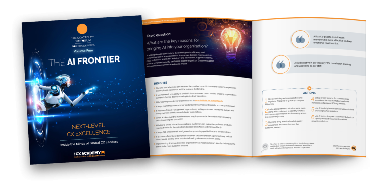 The CX Academy first launched the CX Symposium E-book in 2021 and since then we’ve updated it annually. Please download the very latest edition “The AI Frontier – Next Level CX Excellence”.