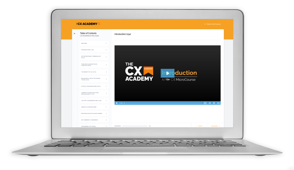 This course aims to equip you with the knowledge and tools required to confidently affect and impact your organisation’s AI strategy, ensuring that it delivers an excellent experience for your customers. Having completed this course, you will not only understand your role in shaping the AI strategy, you will also be able to ensure that it aligns with your CX strategy, your customer promise and your brand values.